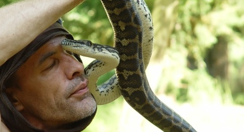 Vorrangig Python`s, eine Art der Riesenschlangen, gehören zu seiner 14köpfigen Schlangenfamilie.